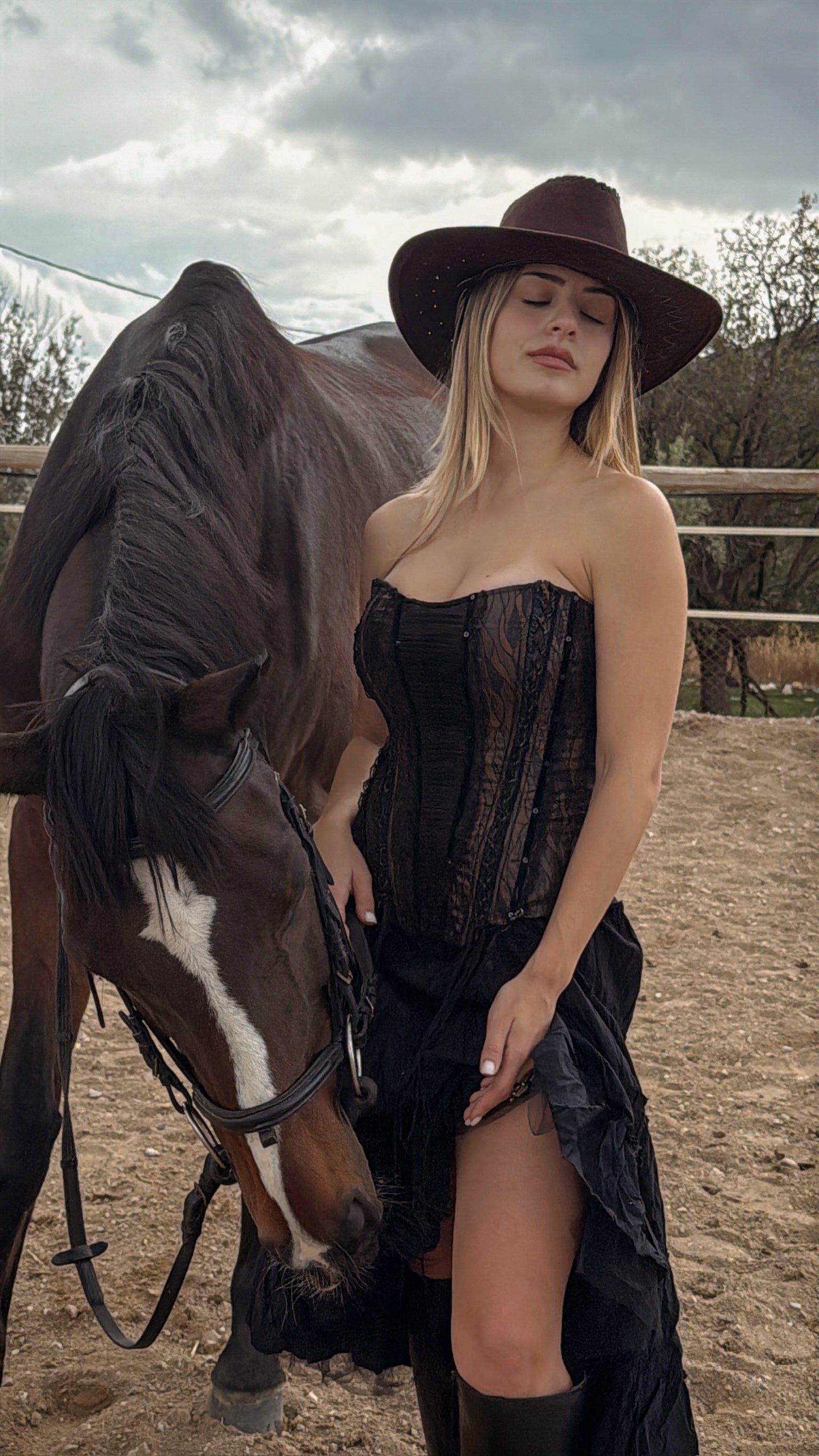 The most perfect dark brown corset bodice that features delicate lace, velvet & sequin details and a built-in bustier. Features zipper closing at the back. The brown top to style this fall and winter seasons — perfect for layering, meant to be treasured forever in your garde-robe.