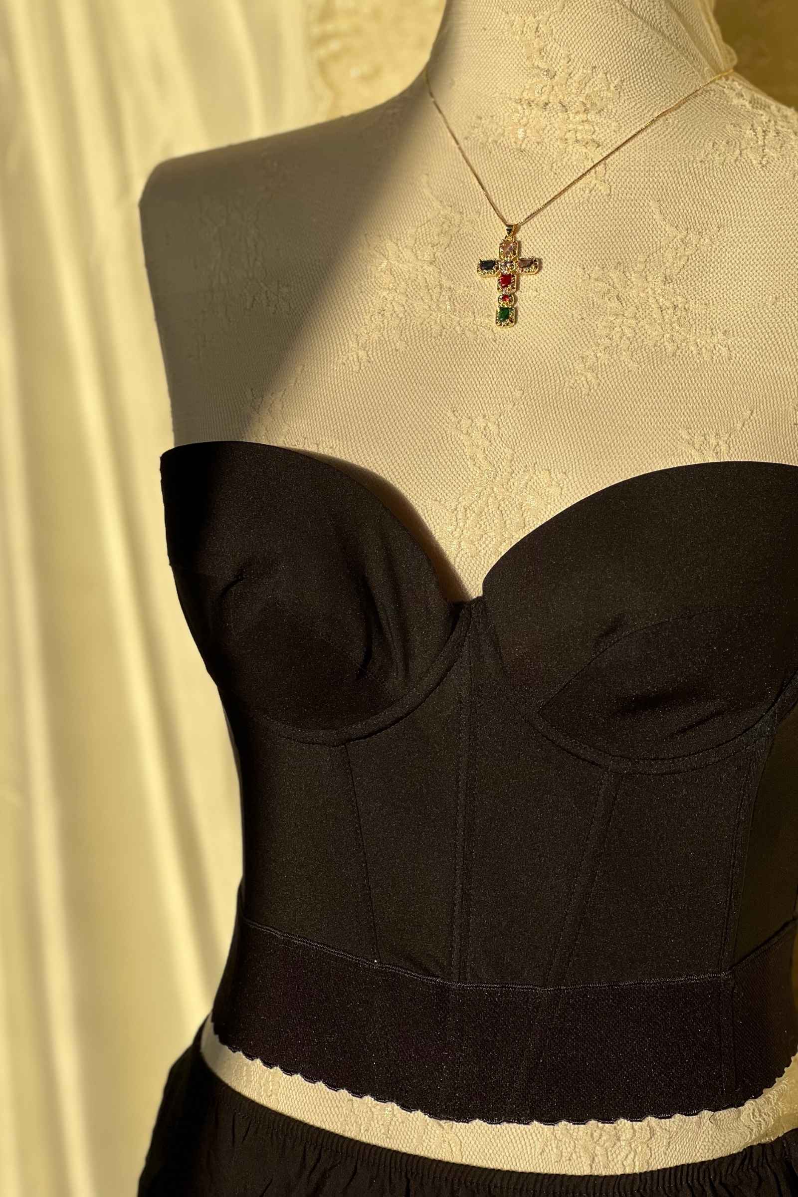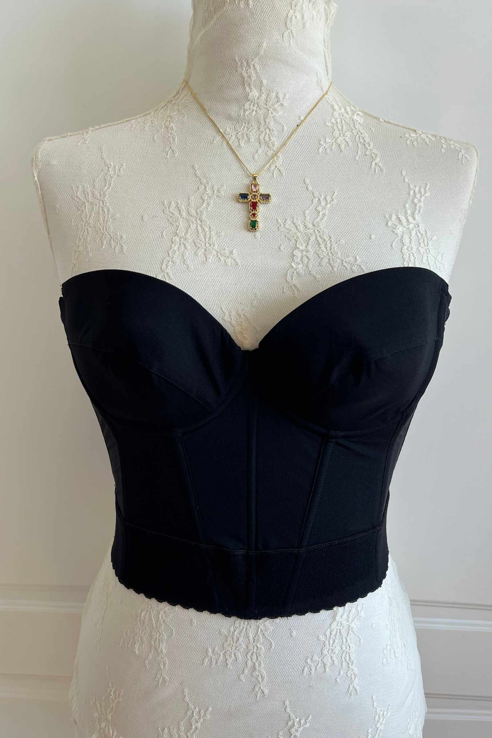 The most chic black backless La Perla bustier. A classic closet staple that can be styled in so many ways, meant to be treasured forever.
