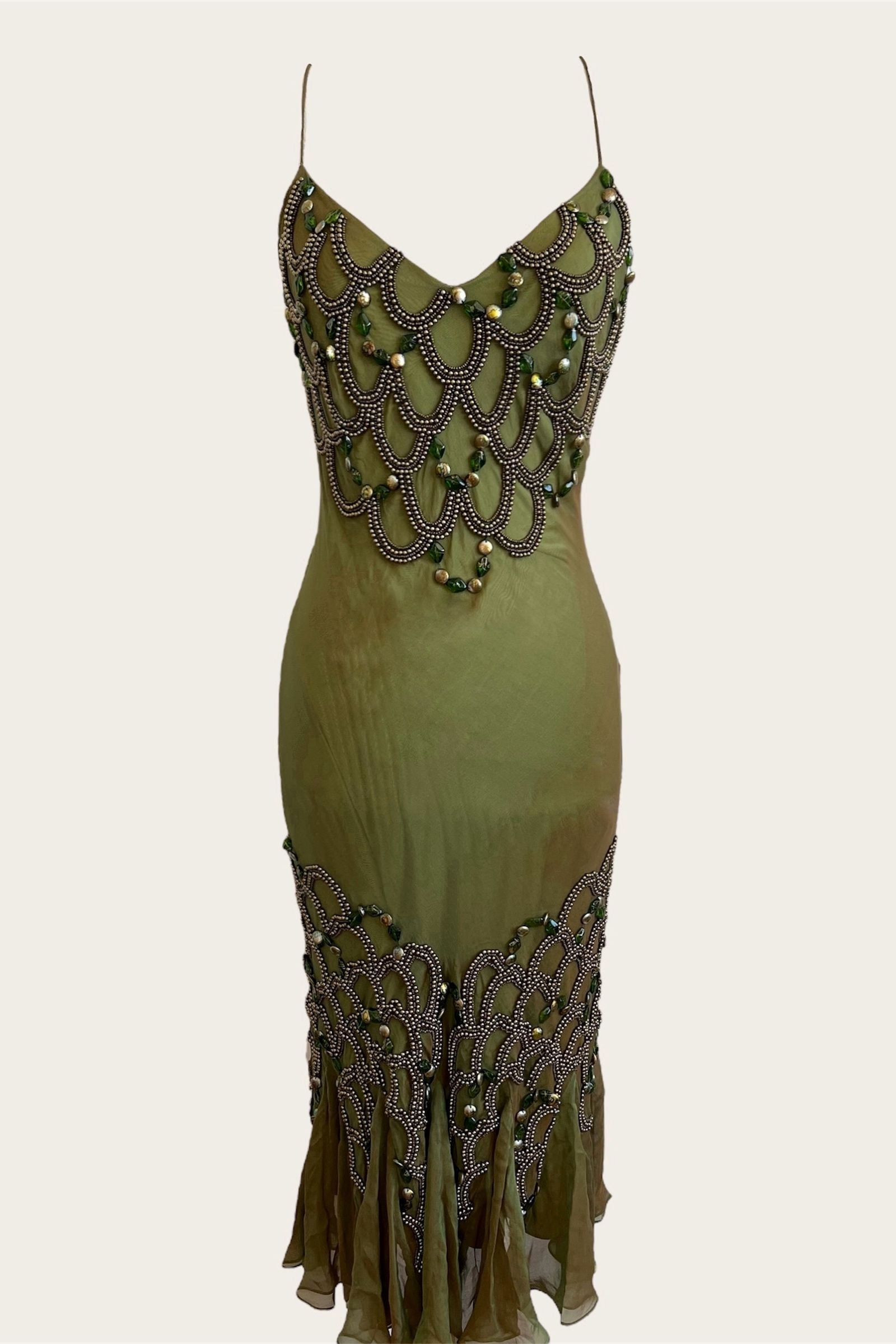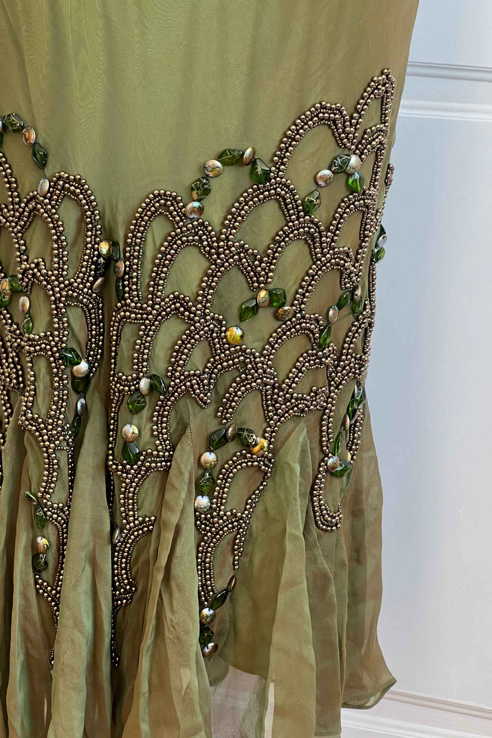 Vintage Silk Seaweed Green Beaded Dress